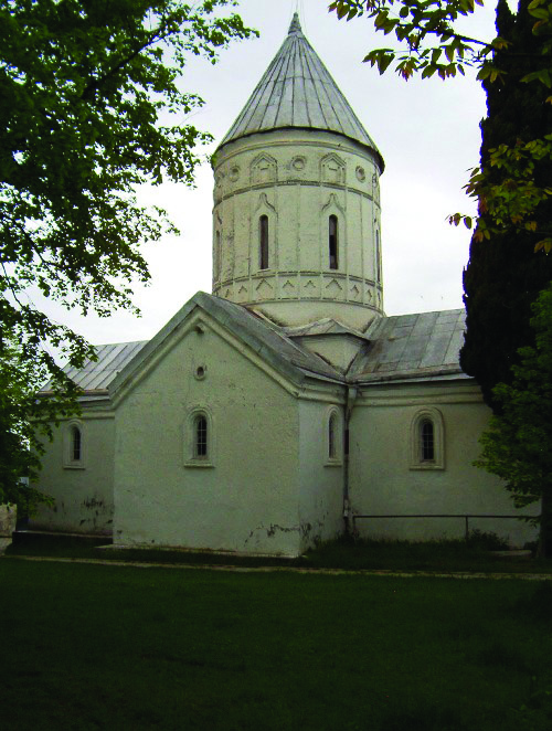 Tetri (White) George Church, St. George Monastery Complex. It is located on a high hill, 2 km south of the village of Atskuri in Akhmeta Municipality. The complex includes a church, a bell tower, a fence and auxiliary buildings. The church and the fence date back to the 10th–13th centuries, the bell tower to the 16th century, and the auxiliary buildings were built in the 19th–20th centuries. The church consists of three construction layers. The dome dates back to the 16th century and is built of brick. The interior was completely decorated in 1988.