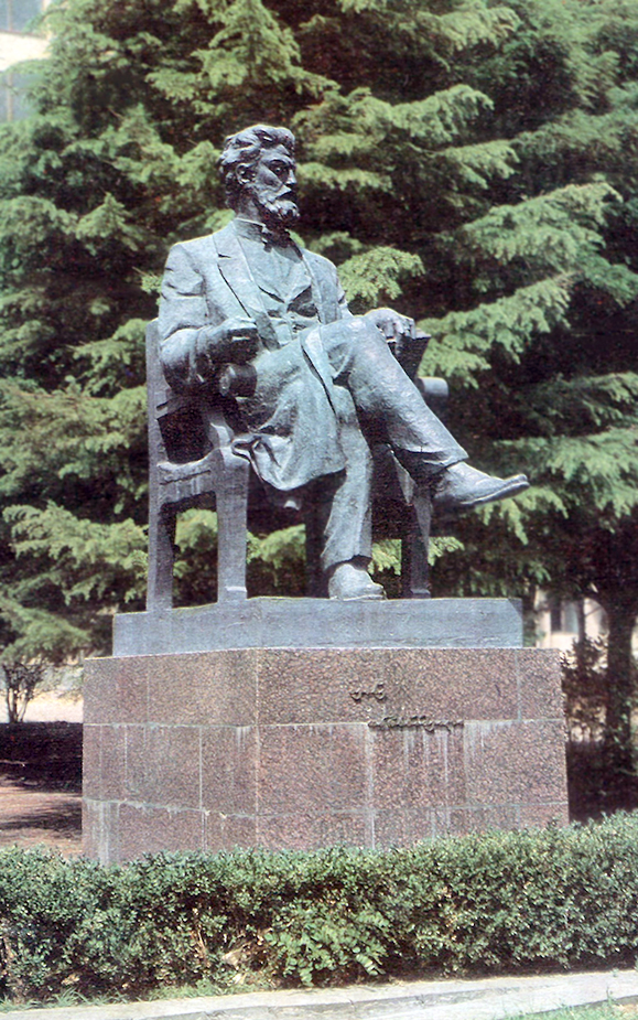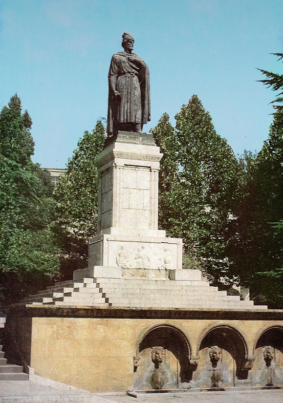 „შოთა რუსთაველი“, ქვა. 1942 (1989 ძეგლი ჩამოისხა ბრინჯაოში), მოქანდაკე კ. მერაბიშვილი. არქიტექტორი შ. თულაშვილი